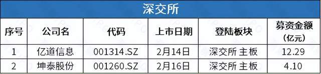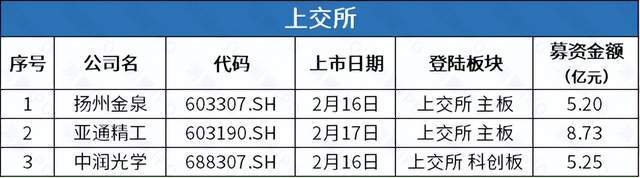 2月13日-2月19日,上交所主板有2家公司上市,科创板有1家公司上市;深交所主板有2家公司上市。