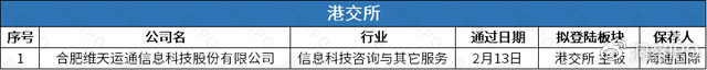 2月13日-2月19日,港交所有1家公司通过聆讯。