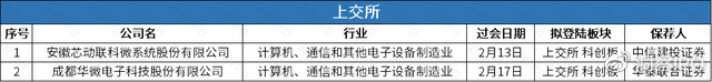 2月13日-2月19日,上交所科创板有2家公司过会、深交所创业板有3家公司过会。