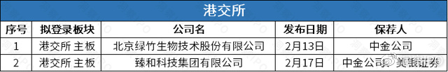 2月13日-2月19日,港交所有2家公司递交主板上市申请。