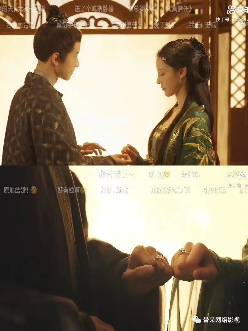 譬如《东栏雪》第四集,男女主对坐床前促膝心事的桥段。本该暧昧拉扯的氛围,却被窗边倏然出现的刺客身影打碎了温情。女主一记冷刃向空中飞去,瞬间划破当晚寂静,一场以寡敌众的战斗配合着大雨滂沱开始激烈上演。女主身形宛如蛟龙,打斗动作行云流水,男主微抿热茶、静观其变。最终战斗胜利,画面定格在一树梨花在夜雨里迎风飘荡的场景。在动静、冷热、收放中营造出极致反差,这是独属于知竹美学的张弛有度,吸引到大批短视频观众的眼球。