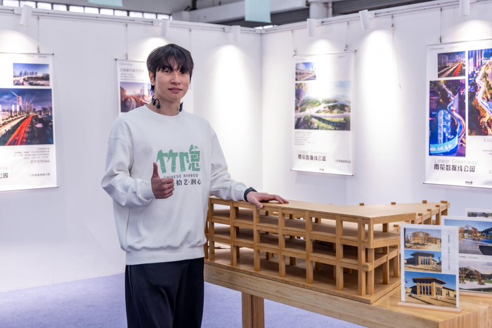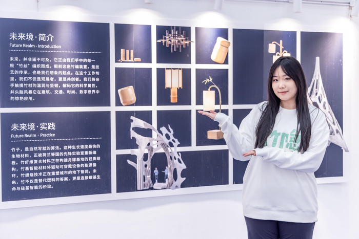 据南京林业大学党委常委、组织部部长农春仕介绍,本次展览将竹文化与现代科技有机结合,以“古竹艺、今实践、未来境”为主题,生动展示竹的传统艺术、当代创新和未来发展。作品展示了学生们的所学、所思在校园文化、各类产业中的应用,更展现了南林青年在推进“以竹代塑”过程中的实践和担当。他希望以此次活动为契机,通过跨学科、跨行业合作,借助“竹隐工作坊”这一平台为社会带来更多具有创造性、互动性和实践性的艺术成果,以数智技术助力中华优秀传统文化传承发展,推动竹产业转型升级。