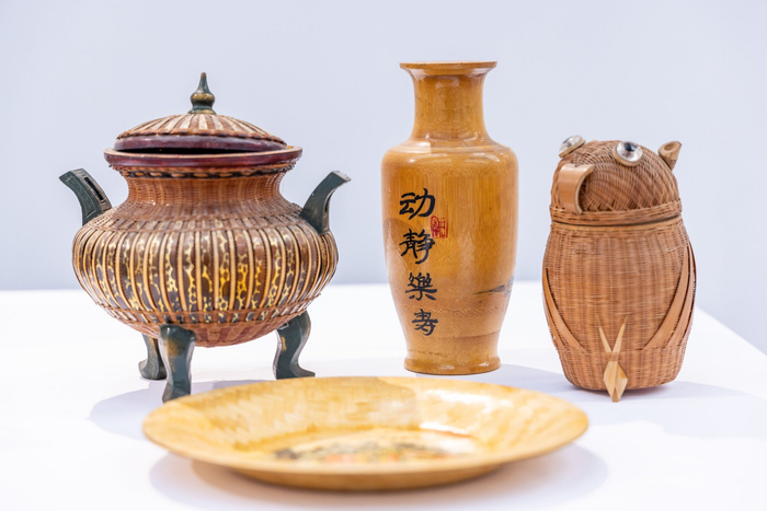 交汇点讯 竹子做的自行车、餐具、家具……12月4日,由南京林业大学家居与工业设计学院、竹业研究院联合主办的“造物・拾艺・润心——传统竹艺的当代转型与未来展望论坛暨竹隐工作坊成果展”在南京林业大学文科楼二楼展厅举行,90余件别具特色、功能各异的竹艺品亮相校园。