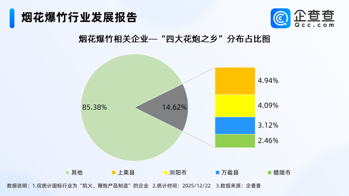 3.分布在“四大花炮之乡”的相关企业合计占比达14.62%